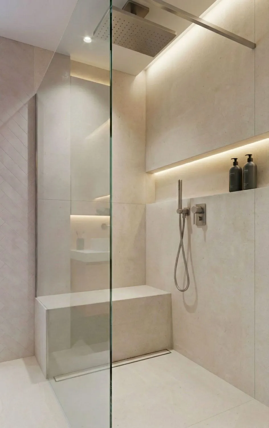 Beleuchtete Nischen als clevere Stauraum-Möglichkeit.